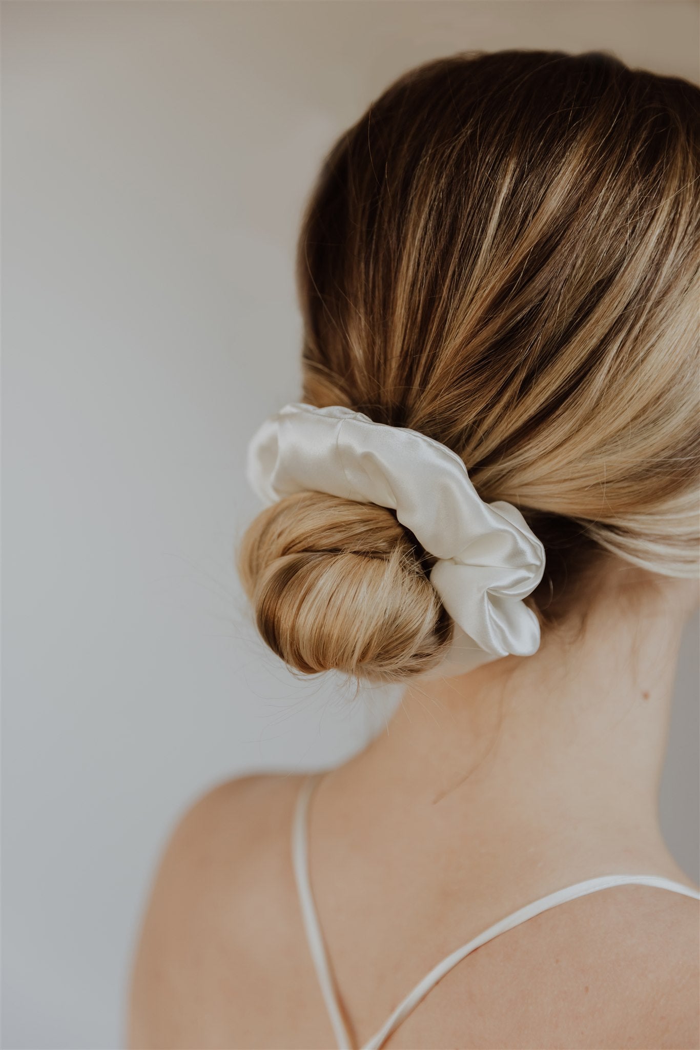 For all hairstyles, short, long, blond, brunette, curly or thick. This medium size scrunchie is grated out of 100% 6A Mulberry silk. Prevents breakage and available in white, black, emerald green, pink and dark blue